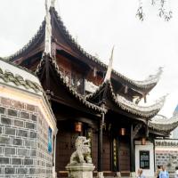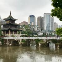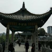 甲秀楼应该算贵阳标志景观吧,图片上看到的多是夜景,灯光下景色优美。我是2月底白天去的,季节差点,加上阴天游人很少,茶楼没人喝茶,不过可以想象好季节时这里的繁华壮观景象。免费参观,对联多是上世纪890年代题写的,邮寄木制明信片挺有特色