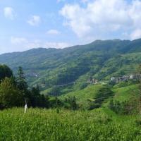 坐车到达山脚下后需要自己爬到山顶才能看到堂安梯田,也可以换成那种私家车,好像5块钱一个人,走路的话10多分钟就到山顶了。在山顶有一个小卖店,在他家消费就能去二楼的观景台了,10块钱的冰粉,听旁边的游客说这个冰粉做的不正宗,不过对我这样一个没吃过冰粉的东北人来说已经很好吃了。在他家观景台拍的全景,还不错。