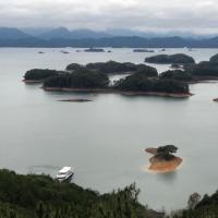 登高后千岛湖湖区景色是不错的,这次去的时候正好下大雨,但是也别有一番滋味。但是岛上很多景点是人造的,比如有个四叠瀑布,看上去还不错,但是导游说瀑布的水是人工抽上去的。还有就是黄山尖这两天缆车在修,走上去的话挺累的。但是上面风景很棒