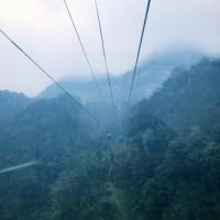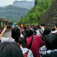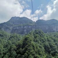 到了金佛山西门游客中心,在哪里买了两张门票,就同家人一起进了景区。在网上买的不需要换票,用购票人的身份证刷一下就可以进去了(一定要带身份证哟)。一进去就要去坐车坐满就走,没坐满20分钟一班。这车把你从山下送到索道那里,必须坐哟,10公里的盘山路。下了车就要换乘索道了,这里的索道很惊险刺激,上升的坡度很大,景色不错。
