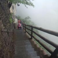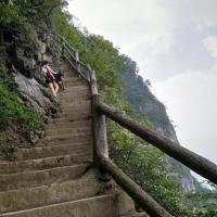 西羌九皇山景区山比较高,老人小孩建议座缆车,有一段比较陡(下图观音崖),恐高症患者可以选择缆车,天气条件允许的话,还可以在晨雾中走铁桥,体验深不见底深不可测的感觉。