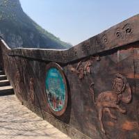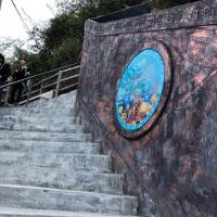 西羌九皇山景区在上山步道的一侧墙上雕刻着精美的羌寨文化艺术作品和羌寨生活习俗,尽管上山路途艰辛,但九皇山美丽的风景,清新的空气,以及精美的艺术墙展示同样会给你留下深刻的印象。