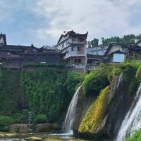 芙蓉镇——一个寻幽访古的最佳小镇,四周是青山绿水,镇区内是曲折幽深的大街小巷,临水依依的土家吊脚木楼以及青石板铺就的五里长街,处处透析着淳厚古朴的土家族民风民俗,让人留连忘返,住在景区里可以在房间里观望瀑布,随遇而安挻好真挺好。