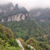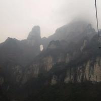 本来是想到天门山景区看风景,看大山。索道上山以后几乎能见度为0。除了眼前的路,什么都是白色。风很大,雾很大,很冷。但是也是不一样的景色。所有的景色都看不到。只能说我只是去过,并没有看到过。下山看天门洞,洞也看不到。全是雾。狂风。有点小失望,应该选择好天气再来。