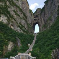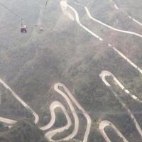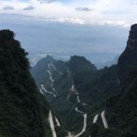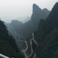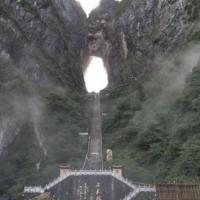 天门山景区绝对是值得一去的地方,是因为有很多奇特的地方,缆车很长,7.5公里! 山路逶迤,有九十九道弯!天门洞很大,飞机可以飞过! 天梯陡峭,有九百九十九级台阶!只是碰到云雾太大,山上就看不到景色了。