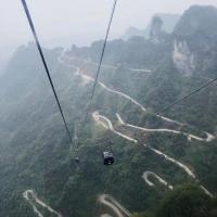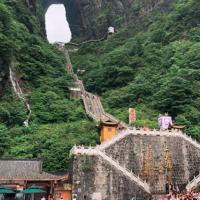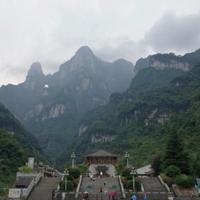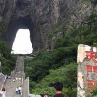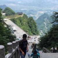 天门山离森林公园开车大概30分钟。天门山旁边也有旅馆还有吃的啥的,看路边的情况应该有很多的农家乐!天门山的门票是唯一一家不支持外国学生证的!网上买比较方便直接去电子取票不用排队。现场买票要排队而且还要走很远!我们选的是巴士上山,缆车下山。那个山路99弯,司机开车很猛,还是挺刺激的,推荐推荐。就记得我没坐稳差点飞出座位。尴尬 ̄□ ̄||。台阶非常高!刚走过天子山的人,真的不想再爬。买了电梯票直接上。从上面看下来觉得选择走下山的人真的很勇敢。好抖。