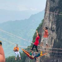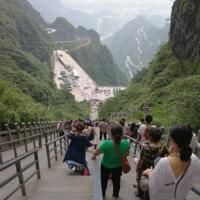 天门山景区,盘山公路很过瘾、刺激,999级天梯也不是一口气就可以上,穿山电梯不是一般的长,玻璃栈道玩的是心跳,悬索桥摇摇摇,索道7455米由山顶到火车站、历时28分钟。