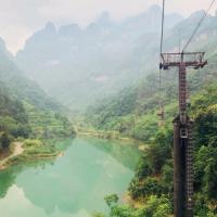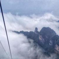 天门山景区索道很长,。天气原因山顶都是雾,看不清。玻璃栈道都看不出脚下的景,在天门洞的时候雾很浓,下到广场之后那边雾气散了终于能看到一点。去张家界真的一定要选个好天气。太受天气影响了