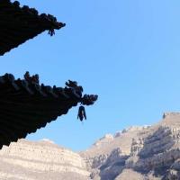 悬空寺里的几个上师都不会中文,我们都是手势沟通,嘻嘻。我们下午过去的时候根本就没有其他游客。寺庙窝在山坳中,很有一种在悬崖石壁中雕刻的感觉。