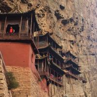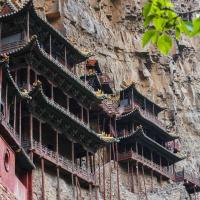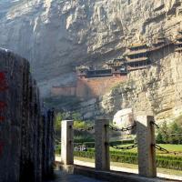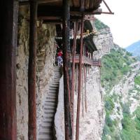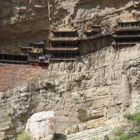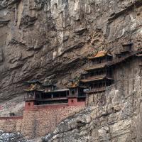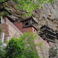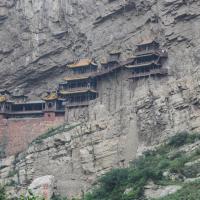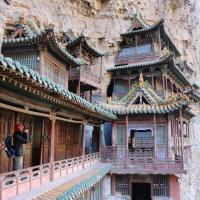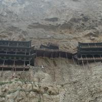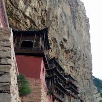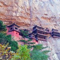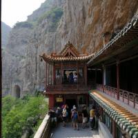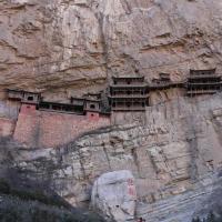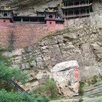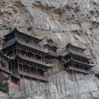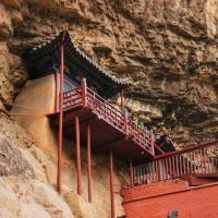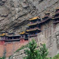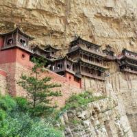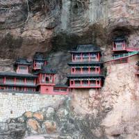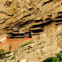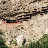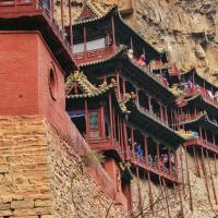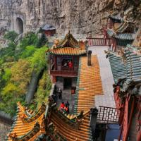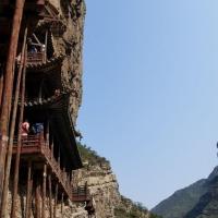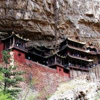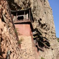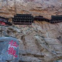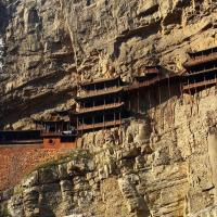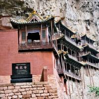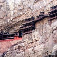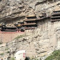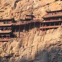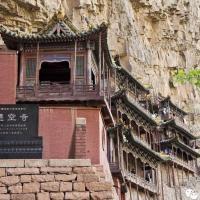 悬空寺,北岳恒山第一胜景,位于恒山翠屏峰绝壁上,始建于北魏后期,迄今已有1500多年历史,为罕见木结构高空摹崖古建筑,是华夏古老文明和东方文化的杰出代表,具有奇、险、巧、俏的独特风格,并以三教合一著称于世! 悬空寺又名玄空阁,取道家之玄,佛家之宝、形貌楼阁而得名。整座寺院上临危岩,下临深谷,在仅有152.5平方米的占地面积上,巧构各类殿阁40余间。诗仙李白观后醉书壮观,徐霞客赞叹为天下奇观!2010年被美国时代周刊选为世界十大奇险建筑之一!
