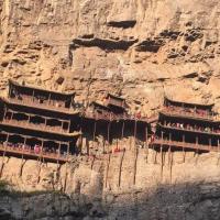 悬空寺大同必去景点之一。是我国现存的唯一一个“佛 道 儒”三教合一的独特寺庙,它是悬空木结构摩崖古建筑,距地面60米高,依山面水,壮观的很。共有三层,即使等上去也不会太害怕 ,我有恐高症,但只有爬到第三层才有点害怕。同去的孩子们没玩够,居然爬了两趟呢 如果不上去的话,25元,登临票100元。学生半价。