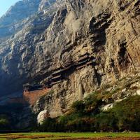 悬空寺位于山西省大同市浑源县恒山金龙峡西侧翠屏峰的峭壁间,素有“悬空寺,半天高,三根马尾空中吊”的俚语,以如临深渊的险峻而著称。建成于1400年前北魏后期,是中国仅存的佛、道、儒三教合一的独特寺庙。