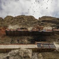 站在悬空寺的寺庙栈道上,可以俯瞰普兰县全貌,远处的雪山、河流也尽收眼底。进寺庙由小僧开门带我们爬洞穴入殿堂,寺内有木梯与各层连接。进寺庙不能拍照。