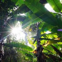 走进望天树景区,湿热的空气和扑面而来的植物的气息无一不提醒着我这里的原始热带雨林的氛围。高大的望天树,奇特的绞杀现象,宽大的芭蕉,阳光透过望天树的树冠被分成光束,透过芭蕉叶洒下来,非常漂亮,还能听到林间的虫鸣哦!
