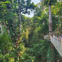 去望天树景区主要是走树冠走廊,还有最高的望天树。如果去过植物园包括东区就觉得都差不多热带雨林的景观,一般是买套票坐船到树冠走廊入口下来后沿路穿过热带雨林走回来一圈,边走边玩三小时足够了