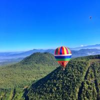 在腾冲火山地质公园圆了热气球的梦想 又完成了人生清单上的一项.对于我这种极其恐高患者,挑战了蹦极和热气球之后,我觉得开飞机和跳伞也可以欣然去尝试了,人生就是要挑战自己的极限,这里虽然没有卡帕多奇亚的壮观,却也可以高空鸟瞰整个火山群,配上高原的大蓝天,美的令人叹止,听说坐热气球是需要运气的哦。