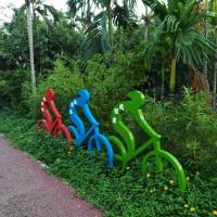 北仍村-主席夫人引领外国夫人们参观访问的乡村,肯定有不同凡响之处。它被国家农业部和国家旅游局分别授予:中国最美休闲乡村;中国乡村旅游模范村。村里面可以骑车游也可以步行逛。我们步行进村后20元坐电瓶车出村,因为村内是单行道,所以把整个村子转了个遍。很值得转个圈-原汁原味的海南风味乡村,乡村小道两旁大多数是笔直翠绿的槟榔树,另有橡胶树及其他不知名的大大小小的树木花草,称它为氧吧太切实不过了。村庄掩映在树林里面,几间小屋点缀在林间,也有重建的一排排砖瓦平房四合院,环境很好。进村要注意,树多虫子也多,我们坐在石凳石桌旁20分钟不到,手臂上、腿脚上咬了好几个苞,而且随着时间的推移越来越肿,痒的很厉害,当