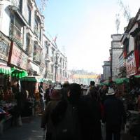 位于旧城区的八廓街又名“八角街”,是拉萨最著名的转经道和商业中心。它原本只是环绕大昭寺的转经道,被藏族人成为“圣路”,而现在却逐渐扩展为围绕大昭寺周围的大片旧式老街区的统称。街上永远少不了朝拜的藏民,也少不了藏式店铺。临街的房子几乎都是商店,贩卖各种藏族服饰、工艺品,还有来自印度、尼泊尔等地的商品。美食自然也是少不了的,许多拉萨名餐馆就位于此,如玛吉阿米、临夏风味王中王、光明港琼甜茶馆等,让你一次尝遍各种藏式美食。