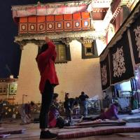 拉萨小时光八廓街# 夜·八廓街 三月,入夜的拉萨,依然有刺骨的寒风,磕长头的人乐此不彼,从未停歇。最拉萨的地方,唯有八廓街转经道、大昭寺广场,以及布宫转经道。 来到拉萨,花个三五天时间,就这么静静地看着他们磕长头或者,你也去磕长头还是很不错的。 昨日去磕了108个长头,磕满1080个长头再回家。