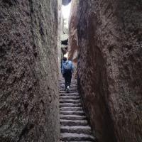 4月去太姥山。我们所走的线路主要是欣赏姿态各异的山石,所以,要放慢行走的步伐,环顾四周,不经意间,各种美景映入眼帘。葫芦洞和将军洞是一定要去的,如果说各种美景只是从旁观赏,游洞便能让你与太姥山亲密互动,只是低头、俯身、屈膝各种动作都要做到位,不然小心头与肩的各种碰撞与摩擦。大胖子是万万不能进洞的,小心卡在里面,进进不了,出出不来。