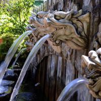 终于来到了传说中的蝴蝶泉!蝴蝶泉现在已扩展成一个大公园了,从门口就能感觉公园很漂亮!我们先在门口坐游览车到了一个湖边,下车再走一小会就到蝴蝶泉了,一路上看到的景色都确实漂亮。泉下方修砌了一座六个龙头的小喷泉,十分美观。泉边也用石头砌了围栏,应该是为保护游客而砌的,因为泉水很清澈,看得出很深!