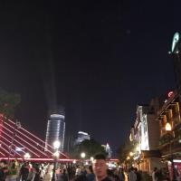 宁波老外滩是晚上去的,很热闹,国庆期间桥上、高层建筑都开灯,挺漂亮的。酒吧一条街更是热闹非凡,江边有很多唱歌的艺人,吹吹风,散散步,惬意