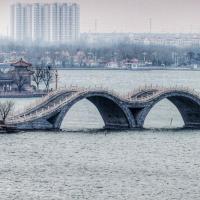 东昌湖聊城是一座水城。光岳楼在水城中央,东昌湖围绕中心,水面很大,是非常有城市特点的,东昌湖特色的美食也别具特色,旅游资源很丰富。只是在桥上走了一遍,风景还算可以