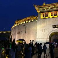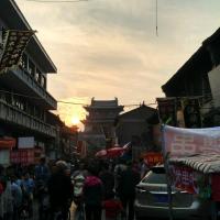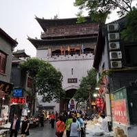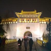 丽景门景区号称洛阳第一楼,晚上灯光亮起后气势磅礴!它主要由两道城门,并且是可以登楼的,费用我记得是30元,我们由于赶时间,就没有登上去!城楼虽好,可以是下面却看到开有餐饮店,哎,什么时候才能给所有文物应有的保护啊!城楼下的一条古街热闹非凡,晚上来这里逛就对了!