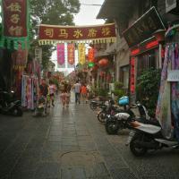 丽景门古街道,两旁的小店应该也是清或后期的房子,牡丹瓷特漂亮,主街最后的麦茶德双皮奶3块一份,便宜又好吃,喝的也不贵,好评,不翻汤就是丸子、豆腐皮、海带丝、粉丝做成的汤,有胡椒味,也不是很好吃,尝一尝就可以了,丝巾很便宜,买了5条,一共55,开心