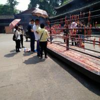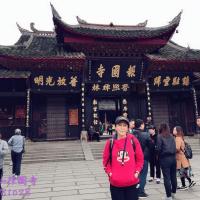 下山后游览的景点,峨眉山报国寺的寺院很大,香火鼎盛,可以在寺院门口看到云游的僧人。园中鲜花绽放,在细雨中清香阵阵。可以在寺内法物流通处请平安回家。去峨眉山,一定不要错过报国寺,千百年来峨眉山开山第一寺,皇家寺院,门票8元,有不少佛教导游讲解,帮你了解佛教知识。
