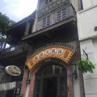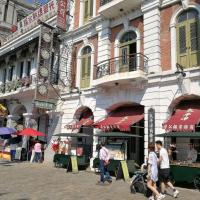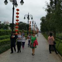 冯小刚电影公社今天玩了二街一院,感觉南洋街房子造得精致。里面吃东西不贵,到午饭时坐无虚席,和昨天玩的长影100乐园的饭店形成鲜明对比。我们坐小火车进去,坐电瓶车出来,来回每位五元钱很合算。门口买票六十岁优惠票,限海南省人,外省市的还是在网上买票比现场合算。
