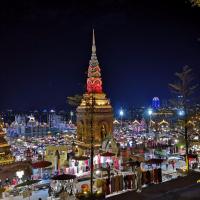 瞧着告庄西双景若干栋高大尚的傣式风情楼盘、满大街的地摊和牌档、特色十足的小吃食肆、万众瞩目的大金塔与澜沧江边的星光夜市,真使得世界各地的游人们都趋之若鹜!而所有这些,到了夜晚就组合成了流光溢彩的告庄夜景!