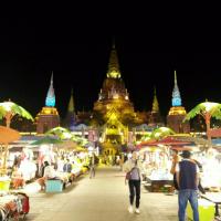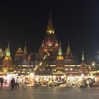 告庄西双景确实是西双版纳最值得一去的地方!整体打造非常有版纳特色,建筑气势恢宏,金碧辉煌。特别是入夜之后华灯齐上,灯光映照下效果更是亮丽无比,星光夜市的确名符其实。