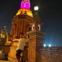 到达告庄西双景是夜幕降临。此时的街头已是好一番热闹景象!到处霓虹闪烁,街边各种摊贩都出来了,各种肤色的游人也是来来往往、人头攒动!车子在这里根本开不太动,我们好不容易找个偏僻地方才把车给停了!从停车处到大金塔,再到星光夜市,处处都是流光溢彩,真是亮瞎人眼睛!