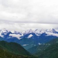 这是一个转折点,在新都桥住宿后,第二天就要奔赴稻城亚丁了,要做一天的车。在新都桥可以看贡嗄神山的远景,我们登上观景台,已经有很多摄影发烧友在等待,日照金山,只可惜天不作美。