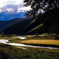 新都桥十里长廊位于川藏线南北分叉路口,是一片如诗如画的世外桃源。高原上的光线,无垠的草原,弯弯的小溪,金黄的柏杨,山峦连绵起伏,藏寨散落其间,令人神往的“光与影的世界”、“摄影家的天堂”。