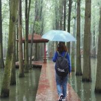 李中水上森林公园是这次旅行中最难忘的景点,虽说是人工园林但很惊艳,一排排高大的水杉上白鹭自由的在枝头飞翔,成林水杉纵横交错整齐划一。人很少没有人会影响你,置身其中,美妙无比。