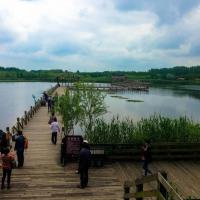 溱湖湿地公园有江南的小调,空气清新,尤其是我们自驾的一路,有热心的泰州人指路,很好的当地人,赞起来,湿地公园比几年前有了一些改变,多了体验馆,曲折桥,免费照相等.