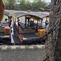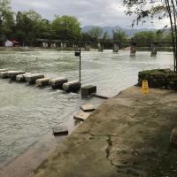 义江缘景区自然风光非常漂亮,江水清澈晶莹,两岸草木旺盛,村民的民族服装色彩靓丽,房屋古朴自然,载歌载舞的节目将这里的特色表现的淋漓尽致。