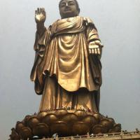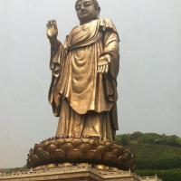 灵山大佛是灵山景区的标志性景观。大幅实际上有两个一个小的,一个大的..是按照先做了小的之后,再放大比例,做了88米的大佛! 山大佛依山傍水,整座释迦摩尼佛像用了725吨黄铜铸造而成,88米的净高很有气势。