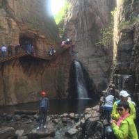 龙潭大峡谷真真配得上5A景区,管理有条不紊,卫生干净,景区风景优美而且有特色,和云台山的红石峡类似,但比红石峡长的多,石头颜色也相似,十步一潭五步一瀑,真是形成了山水一体的优美景色,由于有水有瀑自然温度较低,是夏季游玩的好去处。
