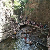 龙潭大峡谷自然景观,形成于12亿年前,非常美丽,壮观。唯一的缺点就是由于是旅游旺季加上景区是单线游览,所以人超多。上山路平缓,下山乘电瓶,赞一个。