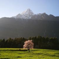 岗乡自然保护区素为人知,桃花节期间的游人也不多。这里也是农村,只是有更多更好的客栈。无门票。位于波密与桃花沟之间,在公路的对面。 岗乡的桃花有别于桃花沟的特点是:桃花树并不密集,而以绿色青稞田点缀若干棵桃花树配雪峰,非常漂亮的景色。在索朗层确家庭旅馆前,有一处青稞田+桃花树+雪峰,在下午6点以后,那是非常美的光线变化带来的美妙景色。在之前,有一处雪峰+桃花树+青稞田的所在也是漂亮如画。 建议下午6点后去岗乡,这时的光线最佳!