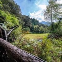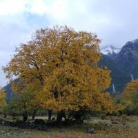 岗乡自然保护区,清幽,美丽,真正的田园气息。 岗乡之行很是意外,因为包车师傅推荐的,之前就不知道。从卓龙沟出来,和司机聊天,他推荐我们去岗乡,草湖,说那里景色不错,关键是路好走,我们的商务车没问题。于是四个人商量一下,导航那个打开,一路开向岗乡。 路面是油路,就是窄一些,好在车不多,沿途美景,还遇见藏猕猴,各种黄叶红叶,湿地小溪,悬崖跌水。到了岗村,一村的农家乐。 先去了草湖,然后住在一家颇有规模的山庄里,喝了点茶,在山庄出事的带领下到后面的树林里摘蘑菇,摘树皮菜,打核桃,玩儿high了。