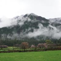 岗乡自然保护区确实非常漂亮,四周冰川和雪山环绕,茂密的冷杉林,时常云雾缭绕,仙境一般。春天桃花盛开,陪衬着绿油油的冬小麦,还有很多鸟类,听说猴子和鹿也多。