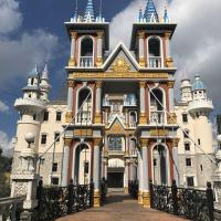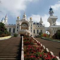 已经是第三次来龙凤山庄影视基地了,每次来变化都好大 值得来玩。玩的东西都很旧了,也不多,很多都要自己出钱买票玩,那张卡能玩的东西不多,不过今天去玩的人也不是很多,就是地方比较难找,广州——东莞——深圳——东莞这样的路线。全程高速一个多小时到,门口就是一座城堡很好认!樱花不算太多,拍照是个不错的地方