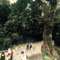 出了六祖殿,介乎于九龙泉之间的那一小段路,以前是灵气逼人的.再暑热的天气,一旦站于此处,遍体生凉,暑气全消.数株直立的古水松,我是从小看到大.但游人日多,喧闹不已,灵气也不太明显了.