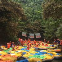 古龙峡漂流,全程为天然河道,依山取势,自然原始,浑然天成,巨大的落差和陡峭的河床,以及河道两岸千泉百瀑的绝美风光,古龙峡极限赛道漂流奔放汹涌、虎啸龙腾、狂野豪迈的阳刚之美。赛道全程6063米,差达378米,最快时速72公里,共分为“极限赛道”“挑战赛道”两个赛段,是广东省赛道最长、落差最大、流速最快的漂流项目,被国家体育评定为“广东第一赛道”。