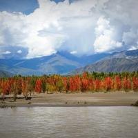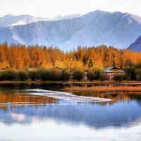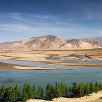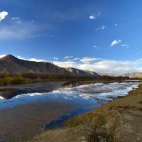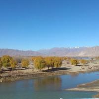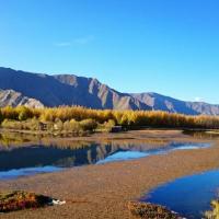 318国道翻越过米拉山口后进入拉萨河流域。拉萨河又名“吉曲”,意为快乐河,是拉萨的母亲河。阳光下,河水呈现出宝石般的湛蓝色,水面平静,河滩上的树木泛着金黄。从尼洋河到拉萨河,318国道基本上与雅鲁藏布江干流一路平行。行车大约7小时后,顺利抵达拉萨市区。