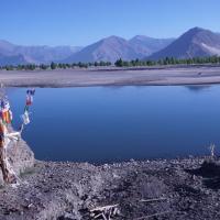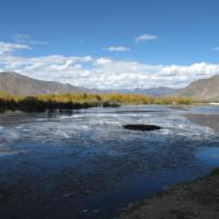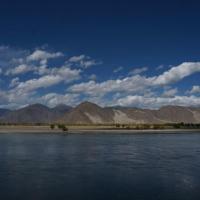 拉萨河在拉萨的南部蜿蜒而过。站在拉萨河畔,浑浊的河水缓缓地从脚下流过。拉萨河的南岸是沙地和不多的草木。再远处光秃秃的石山,山的远方依然是山,连绵向远方伸展